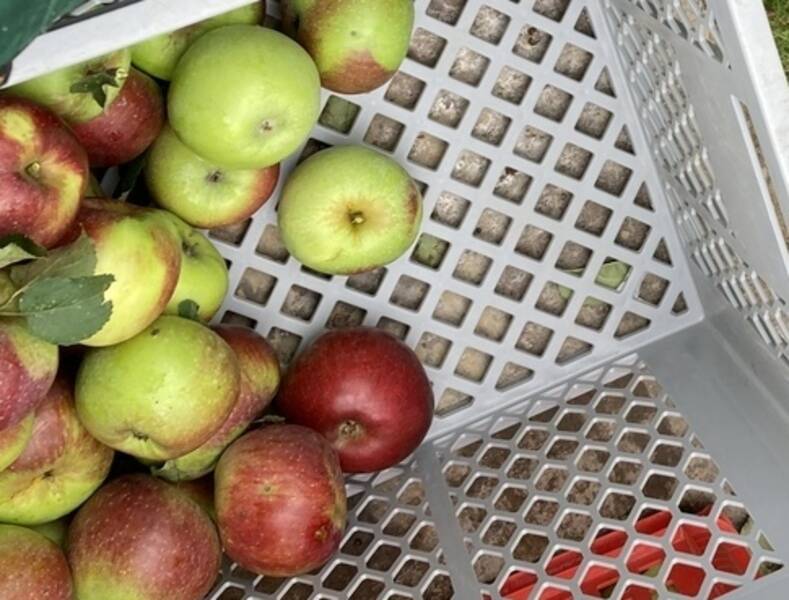 Selbst gepflückt und aussortierte Äpfel und Birnen, wir möchten somit sicherstellen das nur gute Äpfel für unseren Bio-Saft verwendet werden.